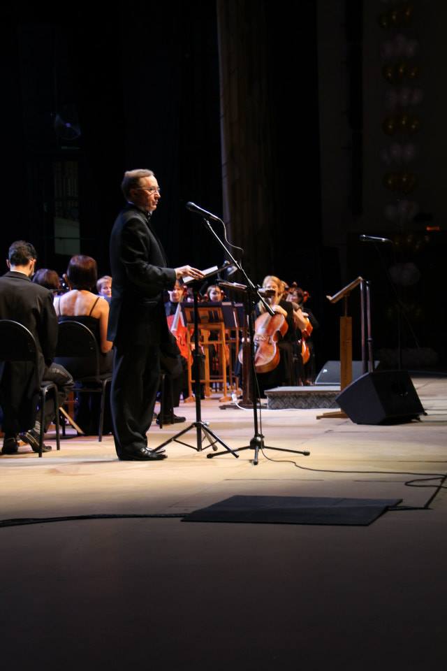 После спетых композиций Николай Бурляев продолжил разговор о фильме и прочитал стихи, которые звучат и в этом фильме. Это были стихи, которые мы недавно учили в школе: «Родина», «Пророк». Я знала эти стихотворения, одно из них даже читала вместе с ним. Он стал заканчивать разговор, благодарил оркестр и хор за работу. Ему дарили цветы и аплодировали очень долго! Потом он объявил, что будет показываться фильм «Лермонтов» после перерыва и удалился за кулисы.