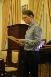 Заседание секции состоялось 21 мая в Музее книги Научной библиотеки ТГУ и продолжалось с 12 до 15 часов. В работе секции приняли участие (выступили с докладами) 13 человек, среди них 3 студента (Зеленя О. О., Серебренникова Е. А., Пермяков И. В.), 3 аспиранта (Дубовенко К. И., Гончарова Н. В., Нургалиева А. Ф.), 3 преподавателя ТГУ (Никонова Н. Е., Поплавская И. А., Чубракова З. А.), регент Гончаров И. Н., 1 сотрудник Научной библиотеки (Климова М. Н.), учитель МБОУ СОШ № 49 Фролова Т. С. Среди выступавших была доцент Кемеровского государственного университета Юртаева И. А. Кроме выступающих, были и слушатели из школ города Томска. Прослушанные доклады вызвали интерес, многочисленные вопросы. Все выступающие получили сертификаты, а также дипломы и грамоты. По итогам заседания секции принято решение подготовить научные статьи для очередного сборника Духовного-исторических чтений.