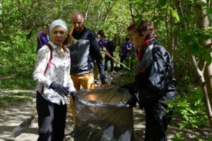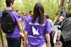 Приходила к нам на помощь Ольга Чусова, представитель команды волонтёров «Серебряные экскурсоводы», провела экскурсию о родниках города Томска. Присоединились к группе волонтёры-самовыдвиженцы. Ребята так себя сами обозначали и сообщили, что объявление о расчистке Воскресенского ключа просто увидели в интернете и пожелали остаться инкогнито. Но оказалось, что многие знают друг друга по другим экологическим акциям, а лично не были знакомы. Познакомила их работа в команде: мешки надо наполнять, а мусор собирать нужна пара. И сразу вспоминаешь сказку Эдуарда Успенского « Чебурашка». Надо отметить, по объявлению к нам присоединились и ветераны боевых действий команды «Друзья Чебурашки», руководитель – Дмитрий Корецкий.