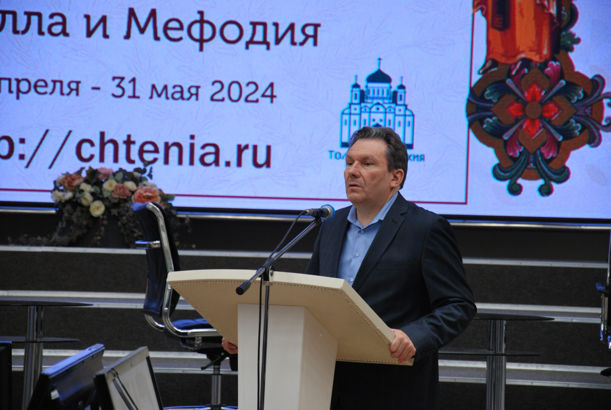 Открыл пленарную часть конференции Андрей Юрьевич Труш, секретарь оргкомитета Кирилло-Мефодиевских чтений, он поднял вопросы: «Нужна ли сегодня русская культура и русский язык? Что нужно сделать, чтобы молодежь приняла традиционные ценности как свои?»